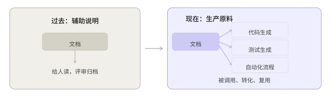 以前很多团队嫌文档慢、嫌文档重、嫌文档没人看。可当 AI 真正进入研发流程后,文档不再只是说明和归档,它开始变成可以驱动生成、协作、复用和自动化的生产原料。