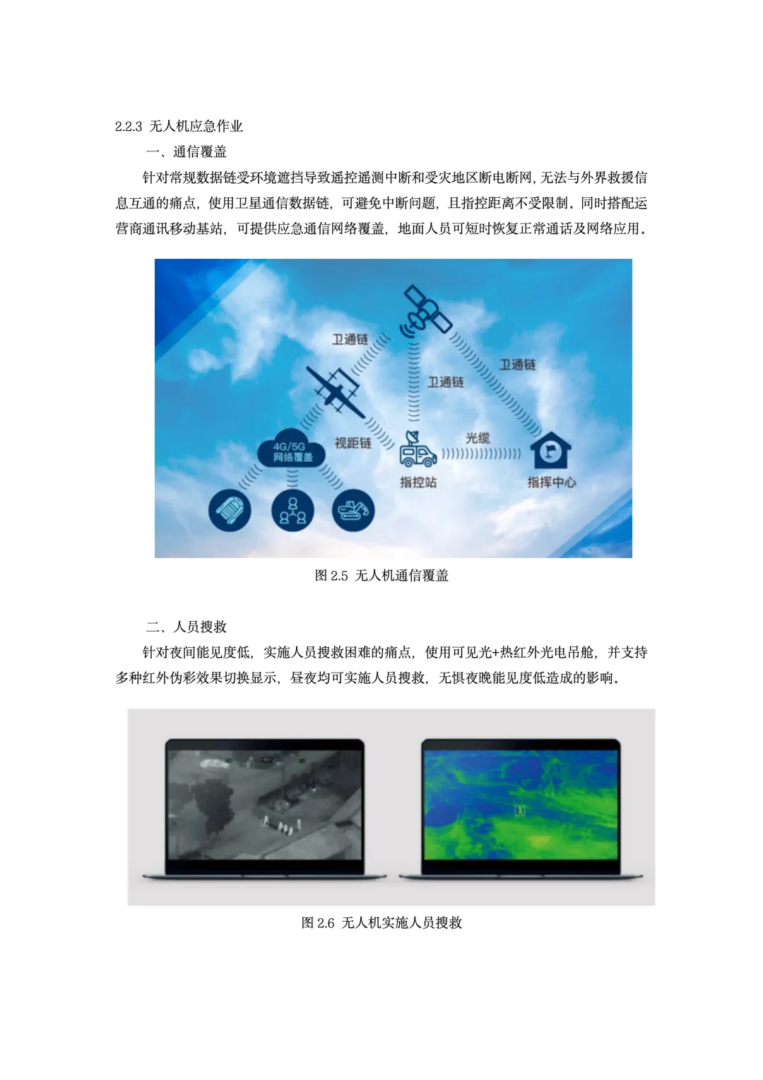 中大型无人机载荷能力强,可搭载通信基站、灭火设备、测绘仪器等重型载荷,在重大灾害中执行应急通信保障、大规模灭火、应急测绘等关键任务。