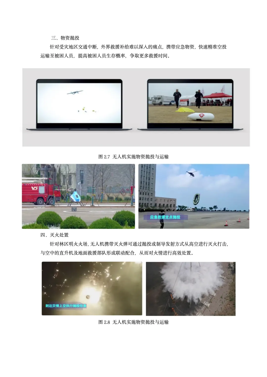 灭火打击:无人机携带灭火弹可通过抛投或制导发射方式从高空进行灭火打击,与直升机、地面消防力量形成联动,压制火势蔓延。