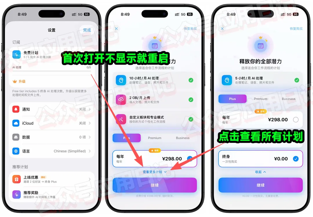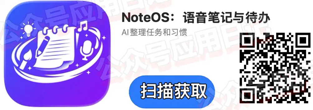¥298速收终身PLUS版!AI 效率工具 最近热门: iPhone 本地部署,Google 出品,趁没下架速收 海波、速度、¥98终身专业版!iPhone 离线也可使用 大家好!分享一个支持文字 / 语音快速记录,由 AI 自动整理想法、总结笔记、生成待办,并可跟踪习惯的效率软件。 内购限免:目前可以免费获取它的终身Plus内购(软件有3种内购,具体看图),打开软件从设置进入内购,然后点击查看所有计划,终身显示0即可免费获取。 NoteOS:语音笔记与待办 软件集语音笔记、待办清单、习惯管理于一体,一站式保存灵感、提醒与计划,让零散想法快速落地执行,提升日常效率。 获取方式 软件可以随时随地的进行灵感记录,感兴趣的朋友速度获取!安装它需要iOS17.6及以上。