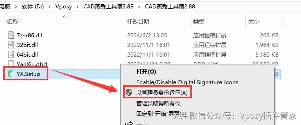 2.右击【YX.Setup】以管理员身份运行。