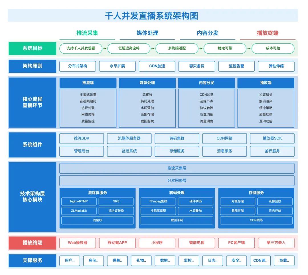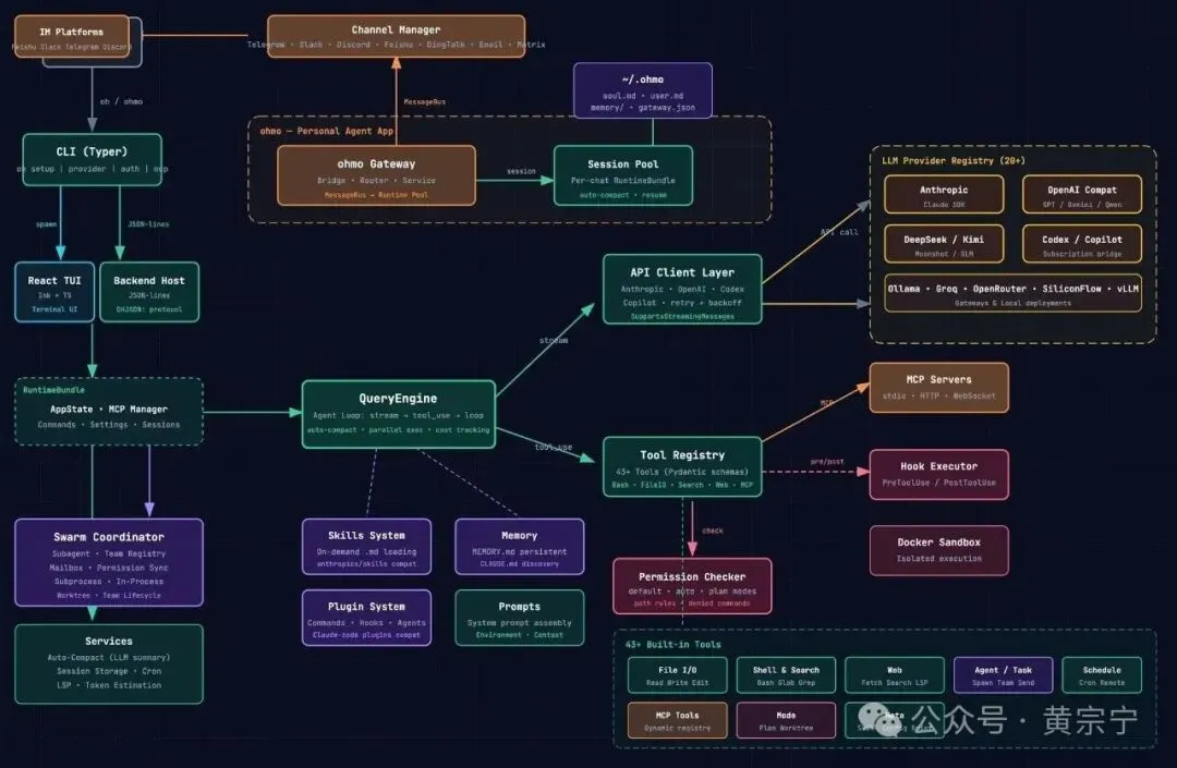也体验了目前国内外号称比较好用的AI绘图工具、Skill等,输出的架构图大都比较洋气和炫酷,但与平时的风格差异太大,也缺少清晰的分层,如下图。相比较还是喜欢线框图分层形式的架构图。