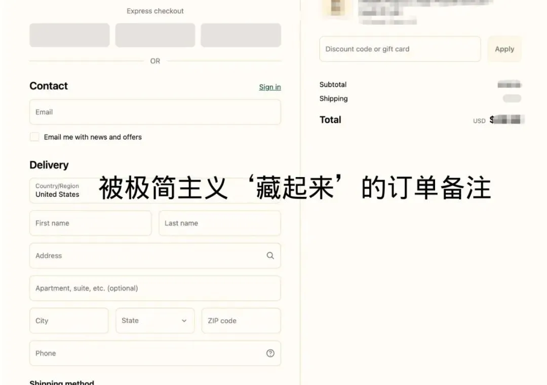 众所周知,Shopify 的结算页面(Checkout)奉行极致的极简主义。为了让用户以最快速度完成支付,Shopify 砍掉了一切可能分散注意力的元素。