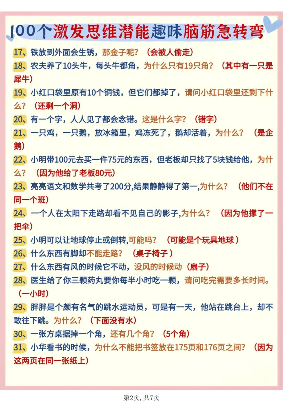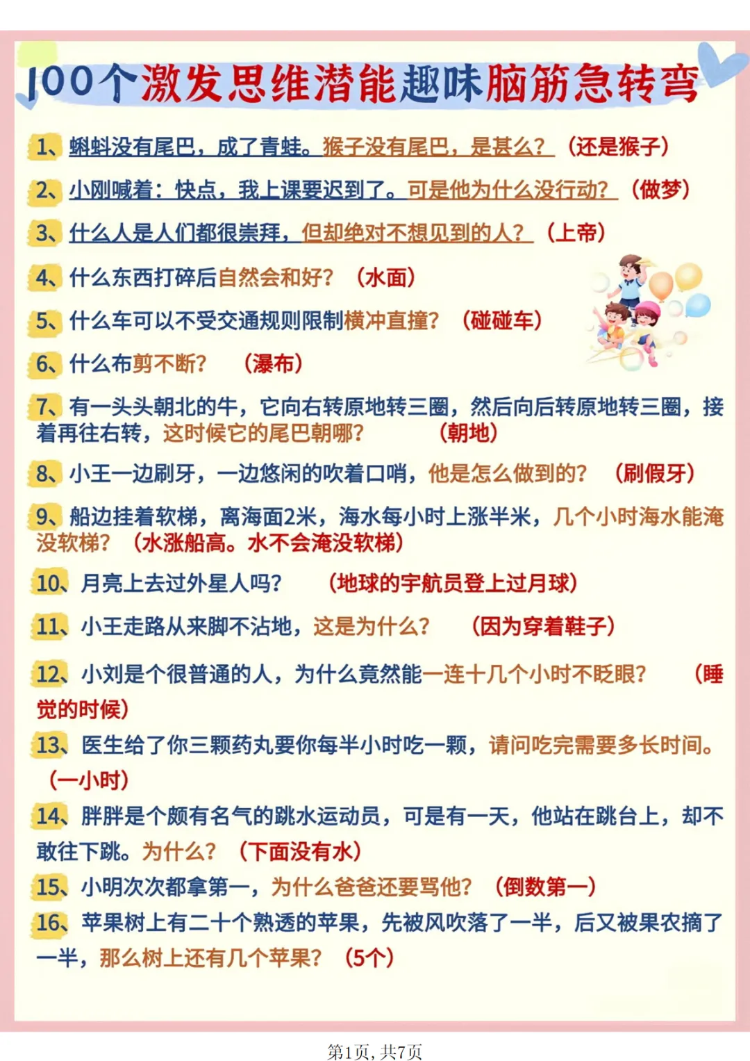 【免费下载】幼小衔接语文 趣味脑筋急转弯,PDF电子版,可打印