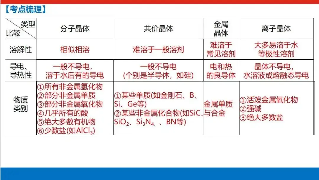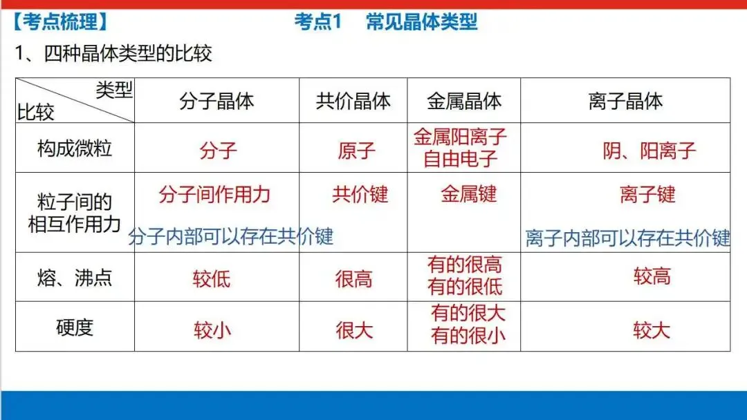 四大晶体类型全方位对比:分子 / 共价 / 金属 / 离子晶体
