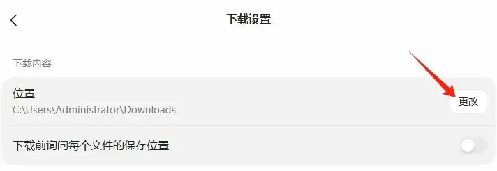 步骤三,单击“更改”,修改下载保存的位置,如下图所示;