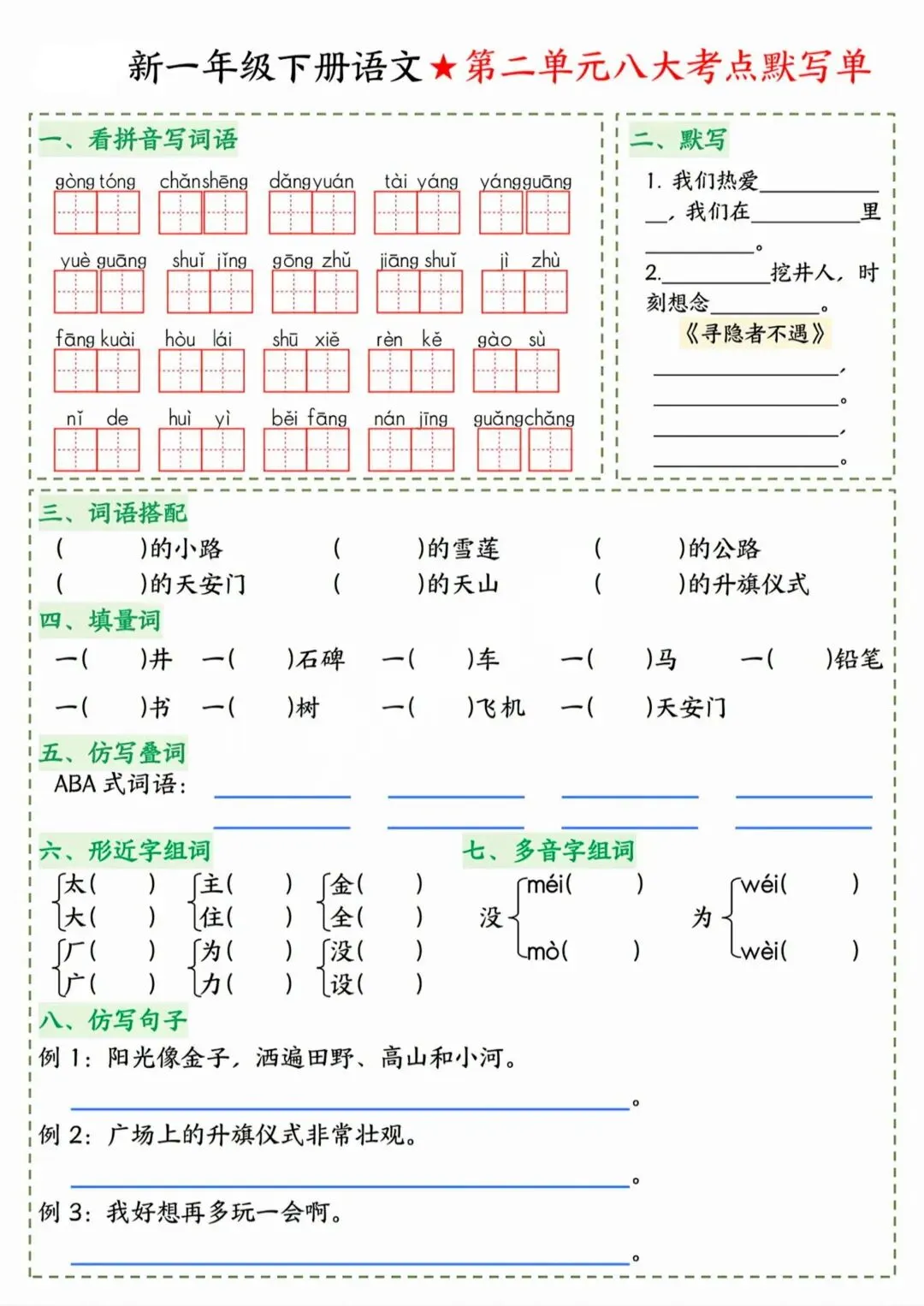 【附下载链接】2026春1-6年级下册语文《八大考点默写单》,PDF电子版(可打印),愿此份资料能够帮助到孩子.