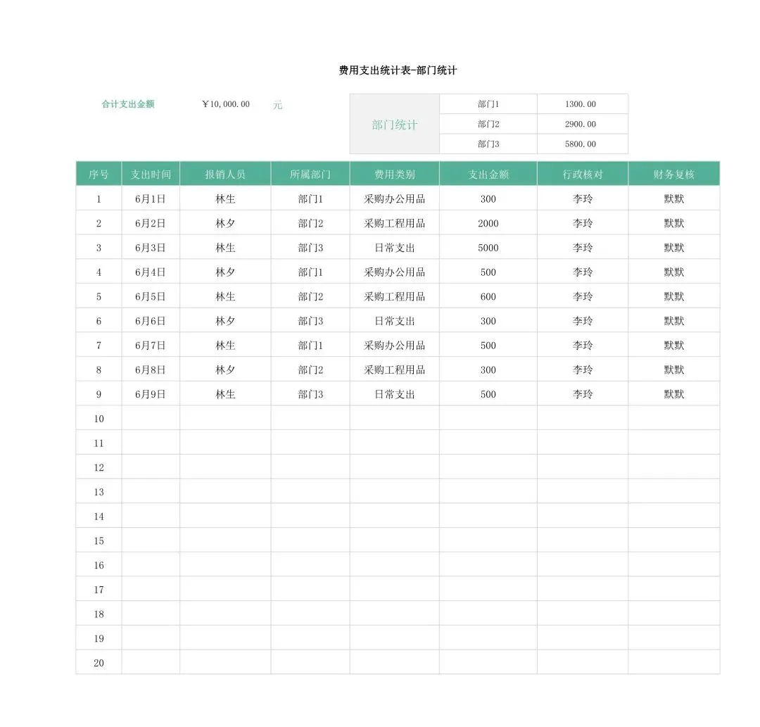 回复关键词“费用支出统计表”领取!