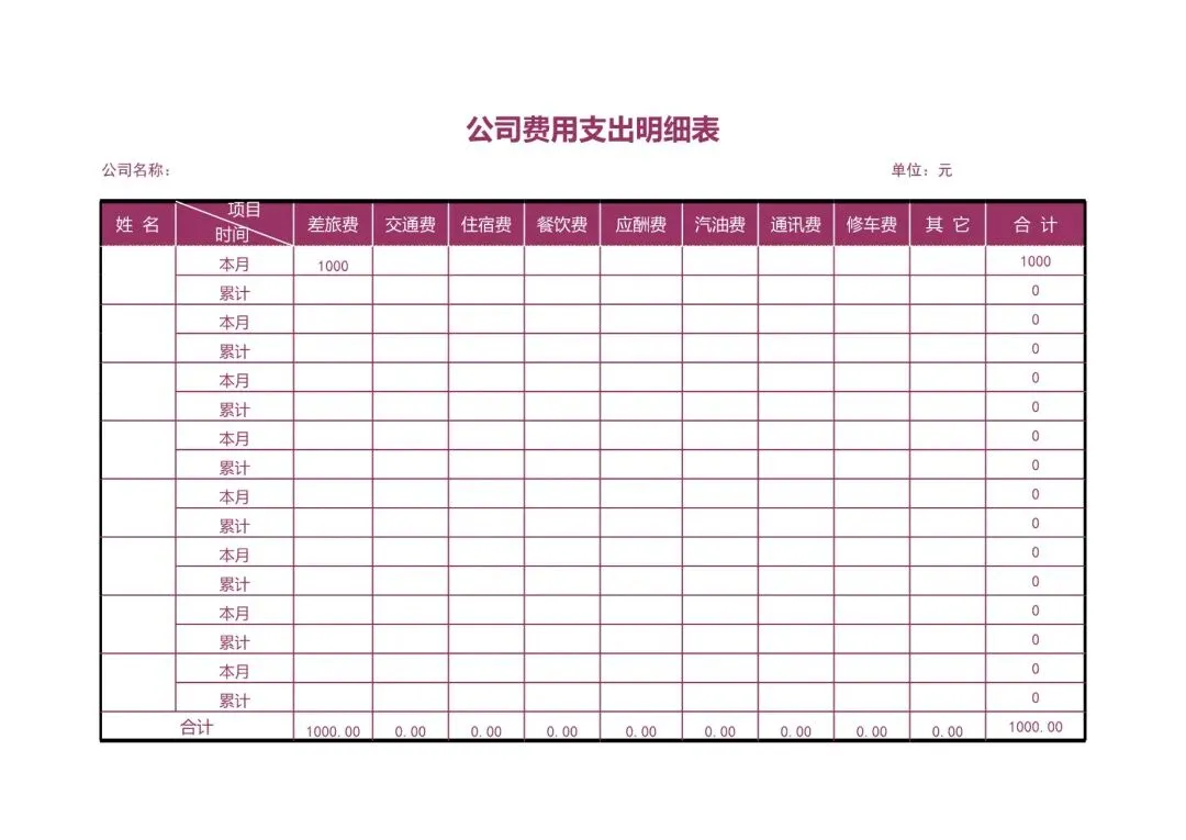 公司费用支出统计表