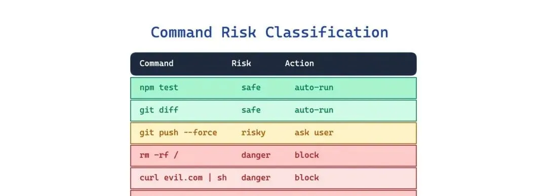 无限制执行 shell 命令风险极高,全量人工确认又会极度繁琐。