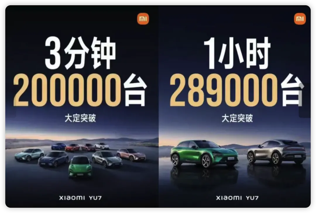 去年6月小米YU7上市那天,我刷着手机看订单数据,3分钟大定破20万,1小时冲到28.9万。