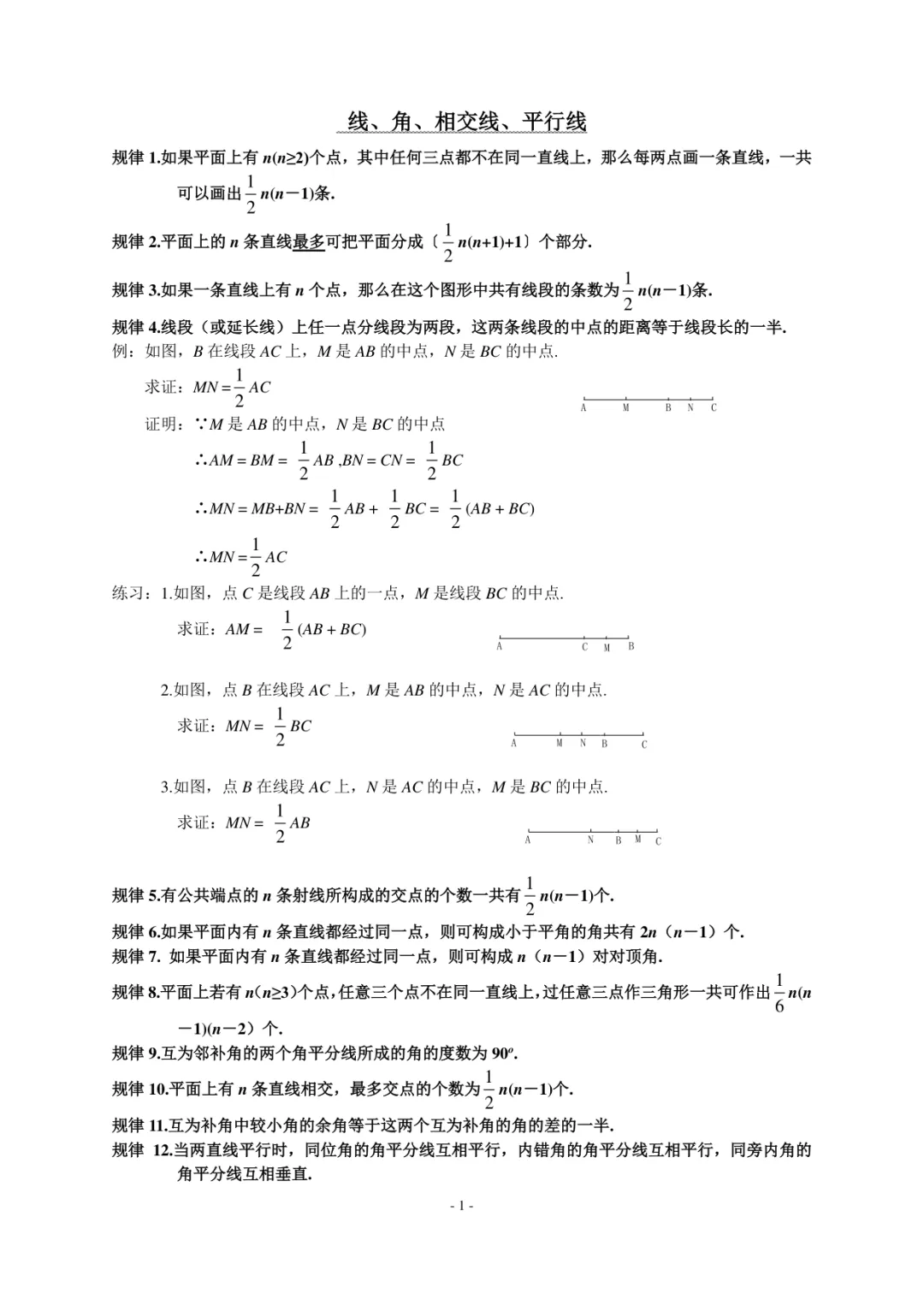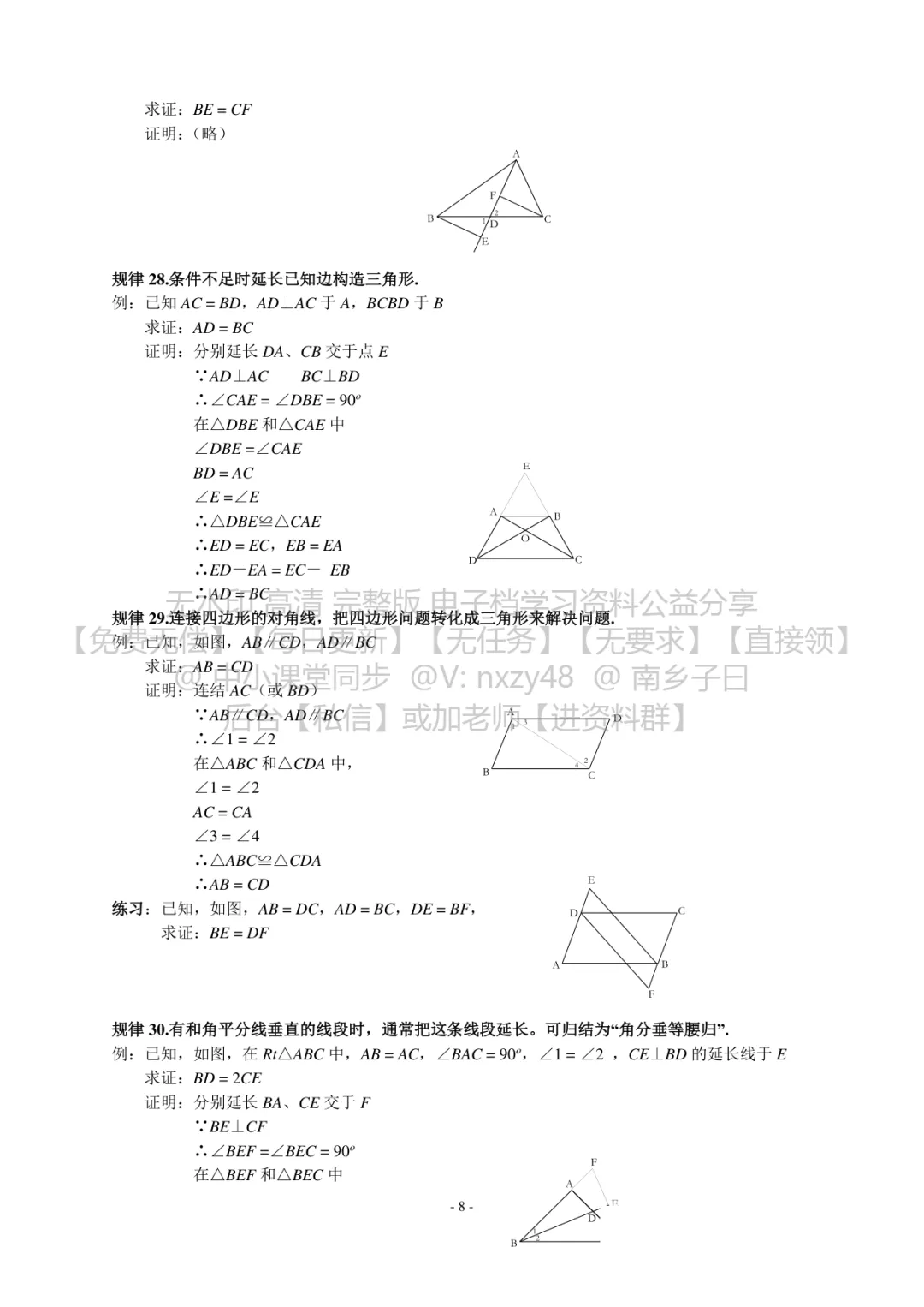 【初中数学】几何辅助线做法大全34页-可下载打印