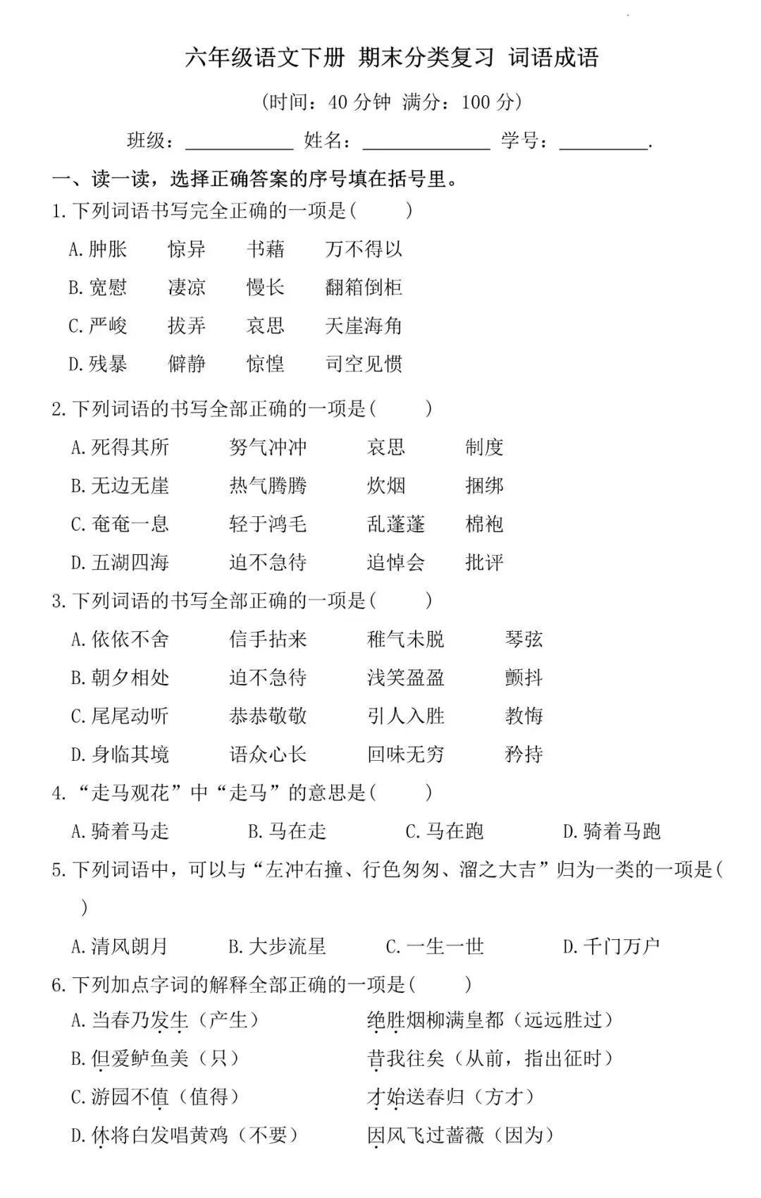 可打印电子版|【部编版】2026六年级语文下册 期末分类复习 词语成语 含答案 本文电子版永久链接:https://pan.quark.cn/s/cd7369c0217b 本文电子版永久链接:https://pan.quark.cn/s/cd7369c0217b
