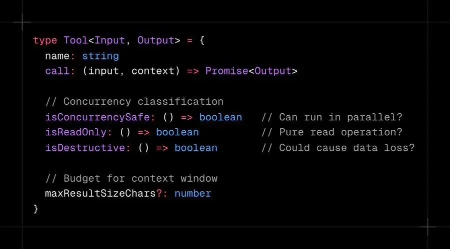 工具的并发分类。 只读工具并行运行。状态变更工具串行运行。2-5 倍加速,零竞态条件。在定义时标记每个工具,让编排层处理批处理。