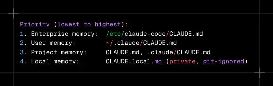 企业级 /etc/claude-code/CLAUDE.md— 组织级编码标准 -