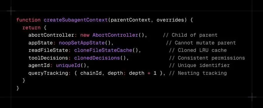 文件状态缓存被克隆,防止一个 Agent 的读取污染另一个的缓存。