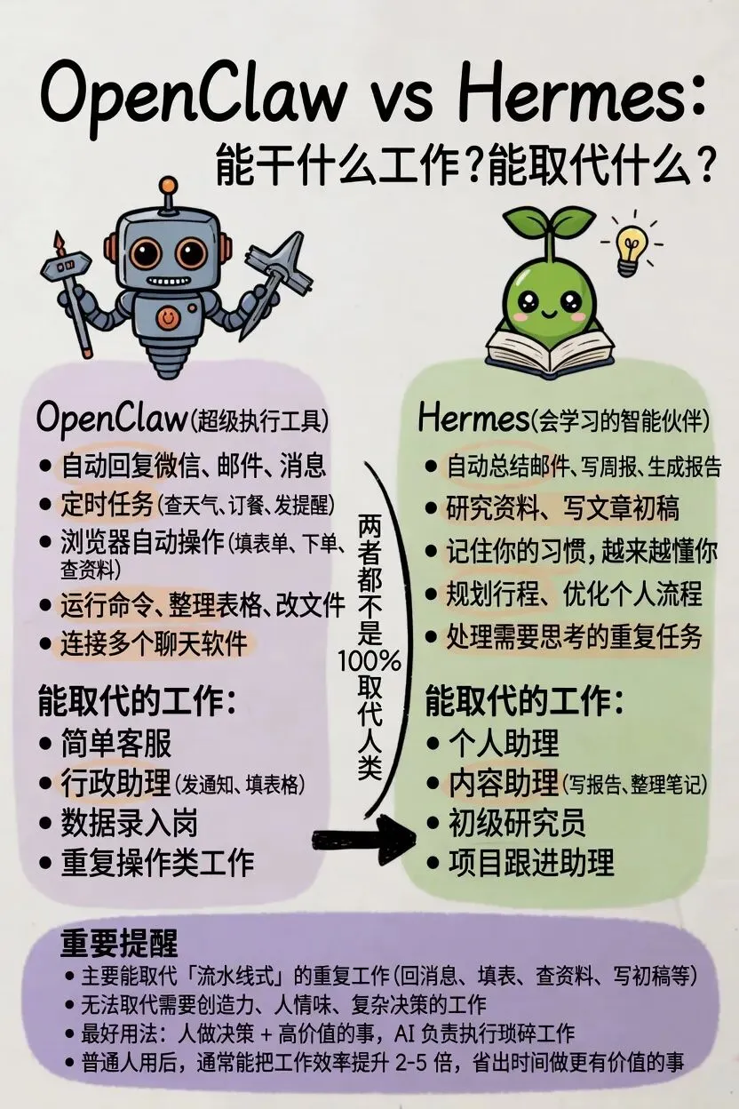 最佳玩法:两者一起用!OpenClaw 负责连接和执行,Hermes 负责学习和思考。