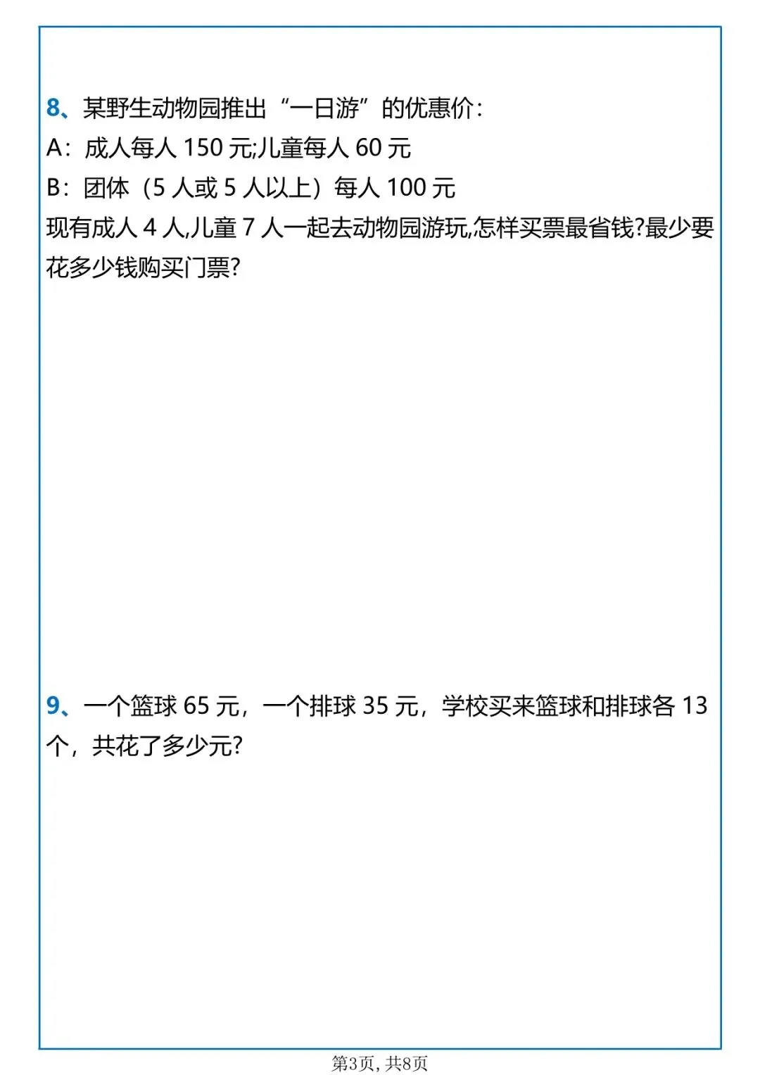 资料题型贴合期中真题难度,题量适中、排版清晰,可直接打印练习,配套详细解题步骤与答案,适合期中专项突破、考前刷题、查漏补缺,帮助孩子规范解题步骤、避开易错陷阱,稳步提升应用题得分率。
