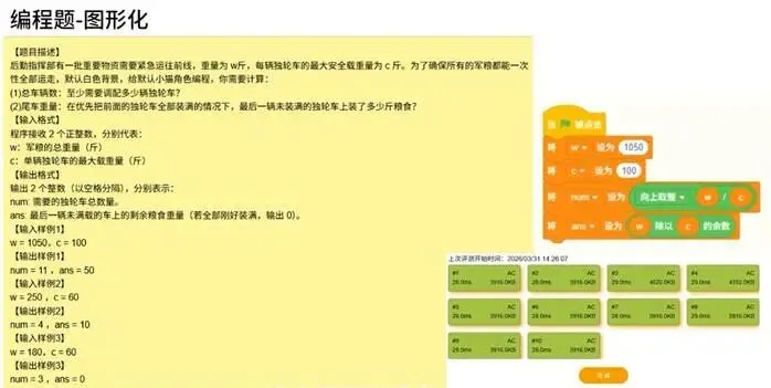 编程题的话也和之前有一些差别,没有素材也不会设置作品题,而是进行算法的一个考察,由于大多数机构的教学都是游戏化做作品为主,所以这个考法大家还是需要练习一下。
