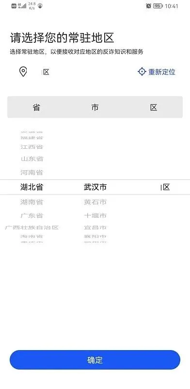(1)进入APP,选择“省-市-区”;