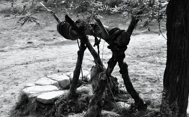 图上这组木头叫木头井架,年代久远的井边才看得到,三四个腿支着横轴,不像现在打水全电动,偶尔老照片里还能看到,岁月的痕迹就在这些褪色的木头缝里卡住不走。