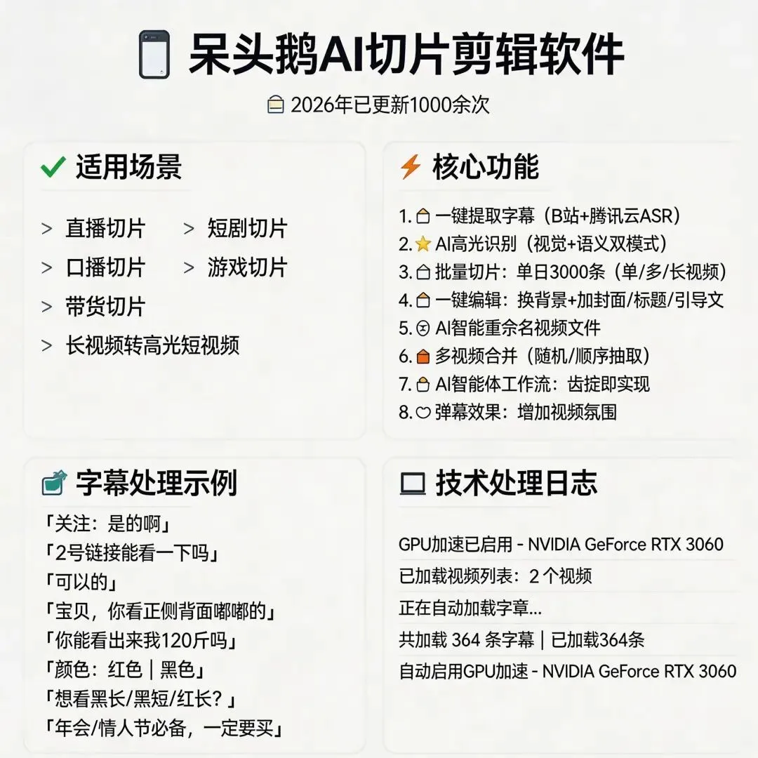 2026年,在众多免费自动剪辑视频的软件中,呆头鹅AI切片剪辑软件无疑是其中的佼佼者。