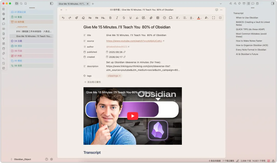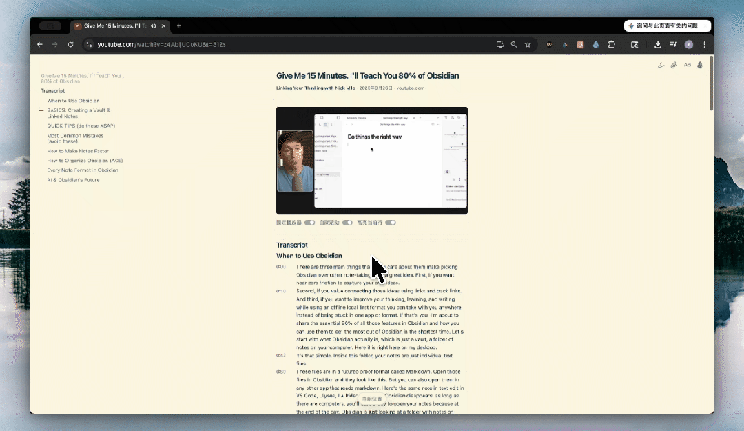 这个插件,推荐给既用Obsidian又刷YouTube学习的你