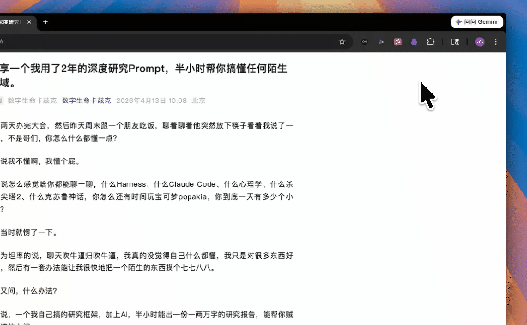 还有一些别的场景,比如有些网页排版很乱、干扰很多、或者就想换个主题沉浸式阅读。 这时候就可以切到阅读器模式下。