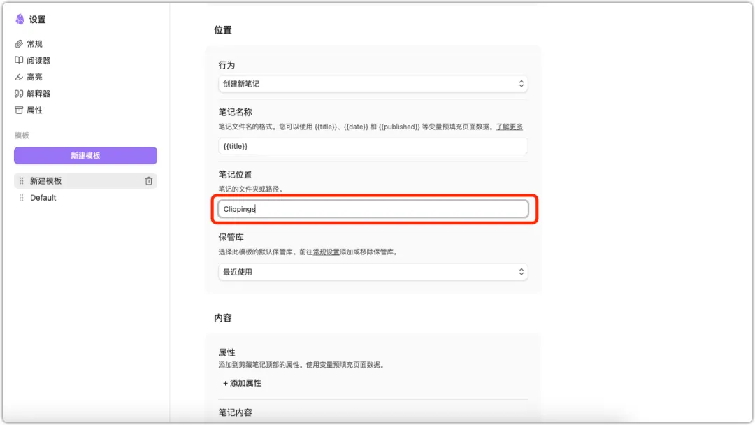 默认情况下,保存下来的内容会放到 Clippings 目录下面,如果没有这个目录,会被自动创建一个。 当然这个位置,是可以在插件配置里改的。