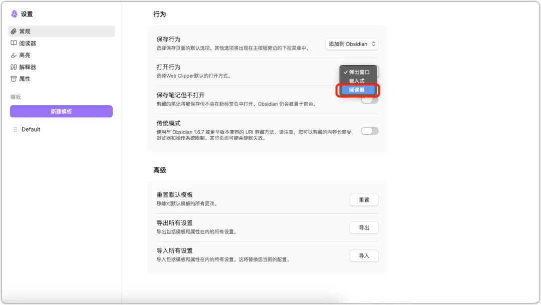 当然,开启网页阅读器预览并不是必要条件。大部分情况下,应该都只需要一键进 Obsidian 就好。