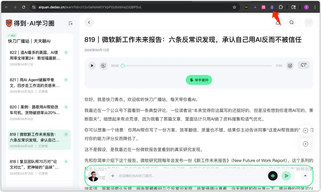 从 YouTube 视频的播放界面点击插件,进入到插件的阅读器模式下 -