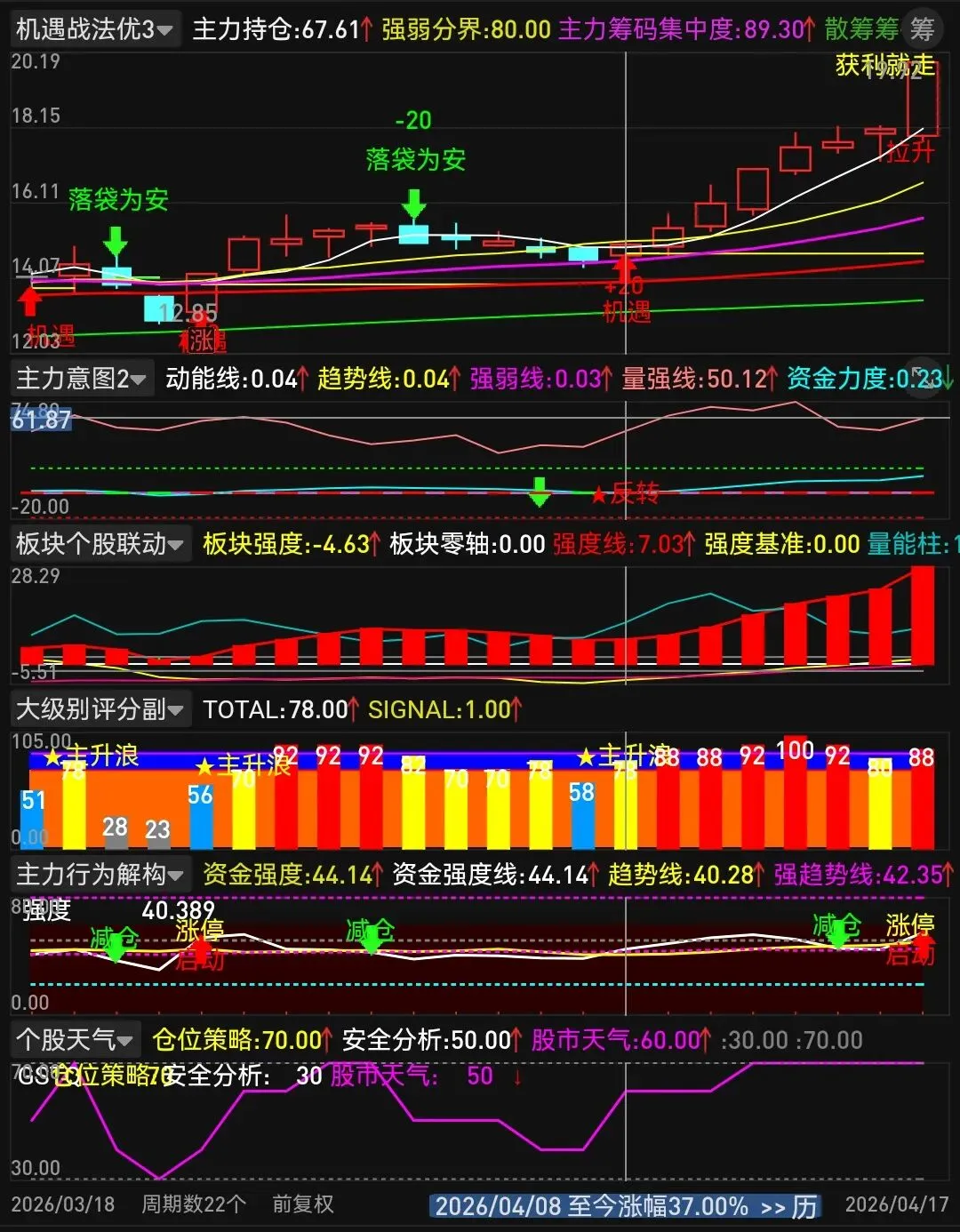 3. 量强线持续>50,资金力度为正