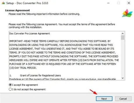 2、双击“DocConverterPro_setup.exe”文件运行,勾选同意协议