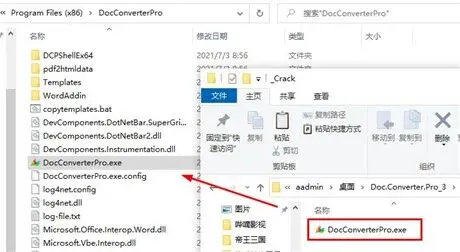 5、将Crack夹中的“DocConverterPro.exe”文件复制到软件安装目录中进行替换即可默认安装目录为【C:\Program Files (x86)\DocConverterPro】