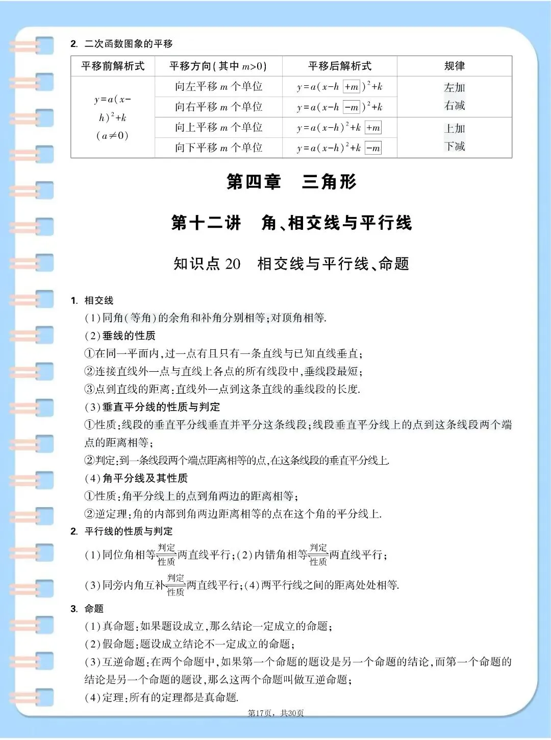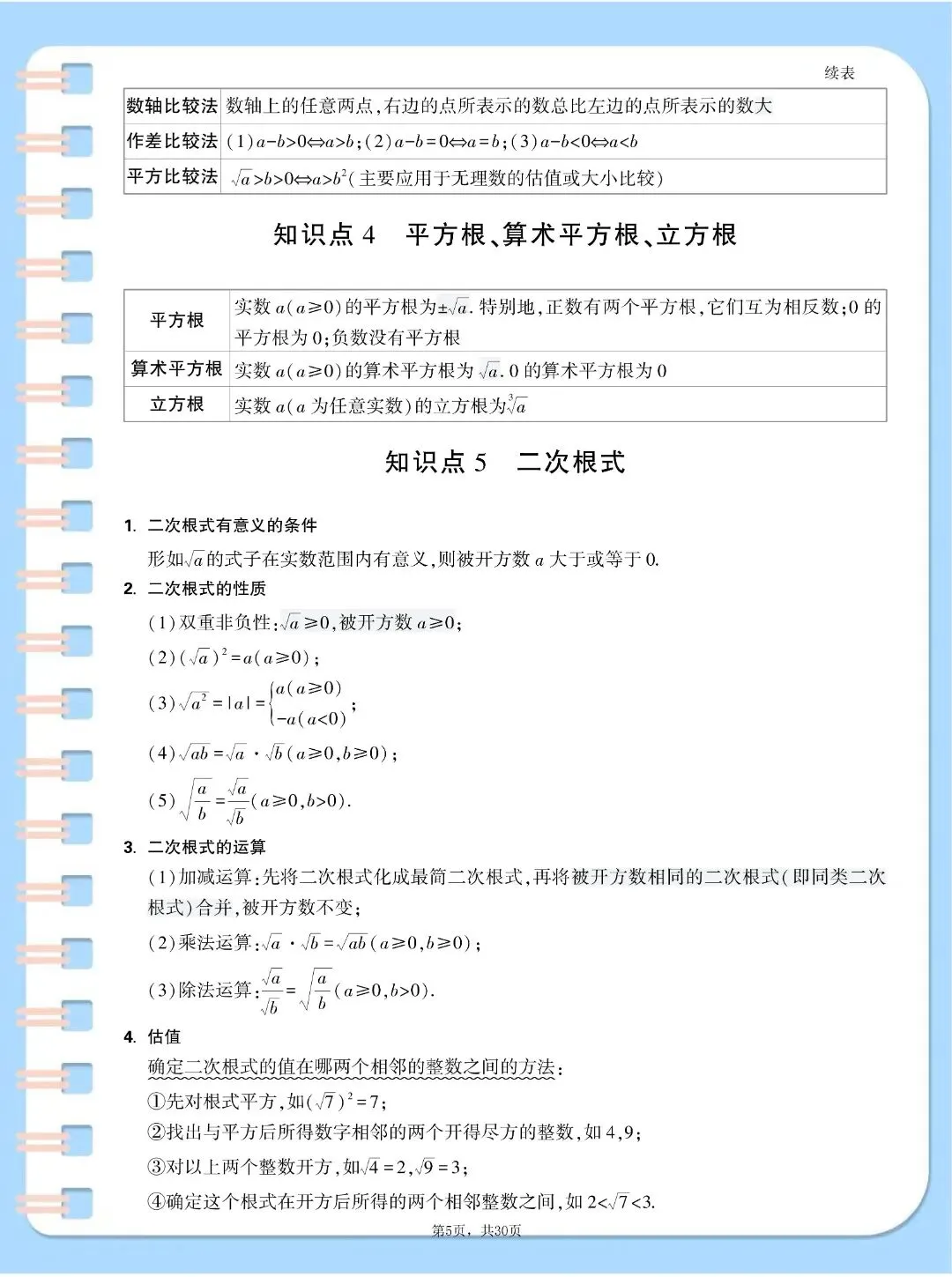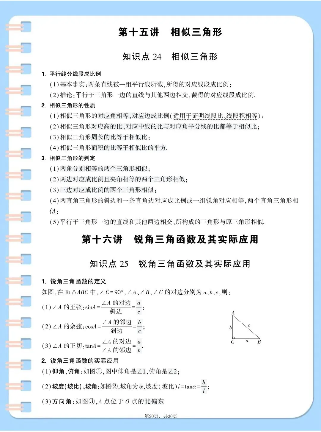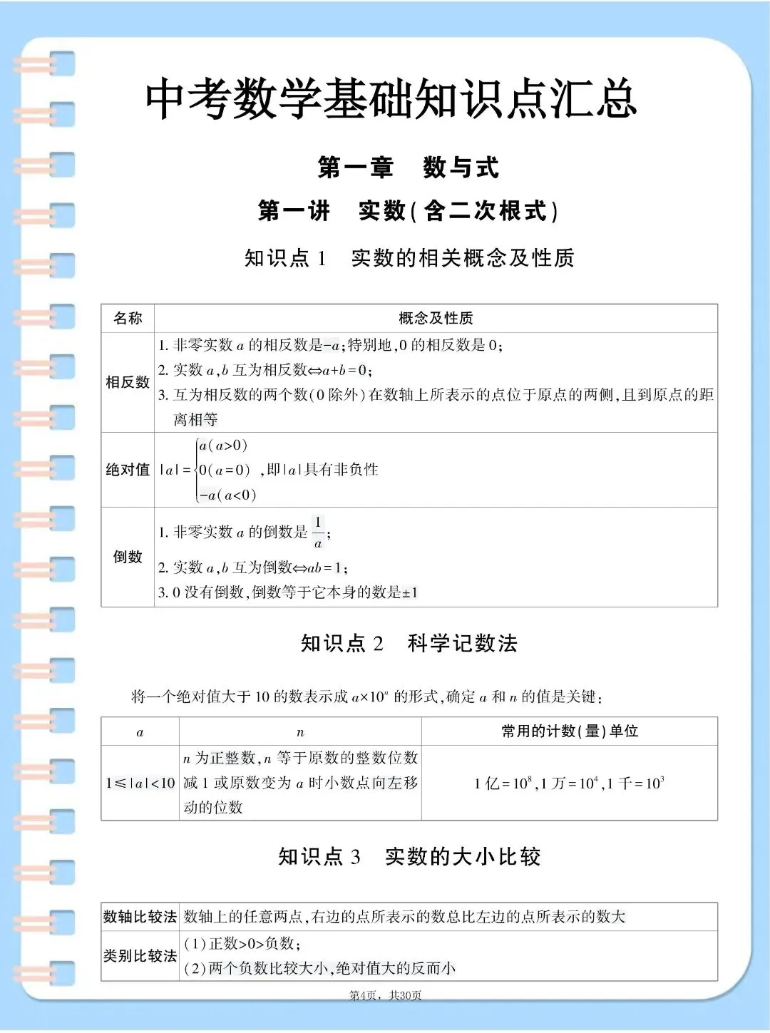 中考数学基础知识点汇总,,完整电子版可打印