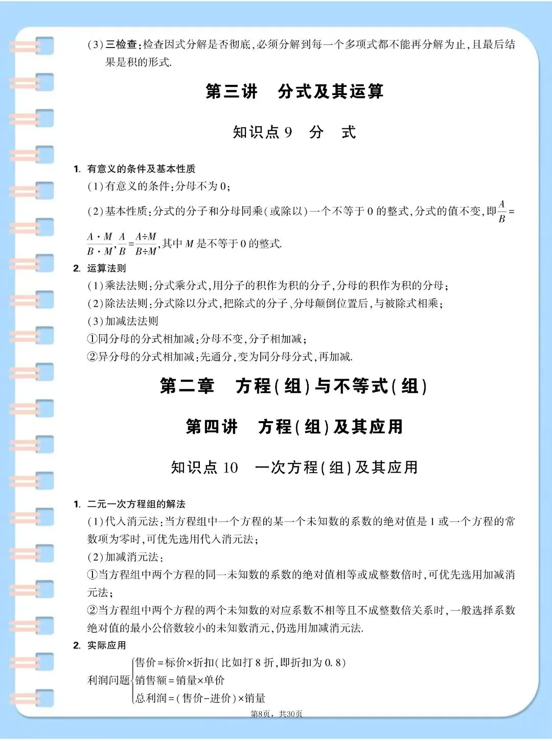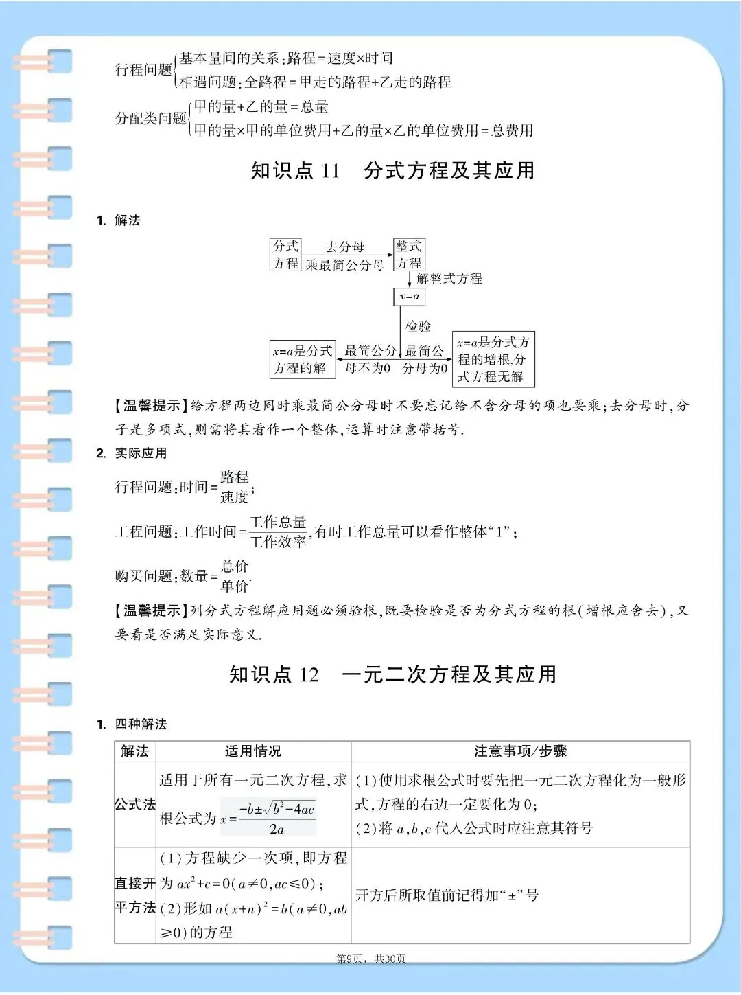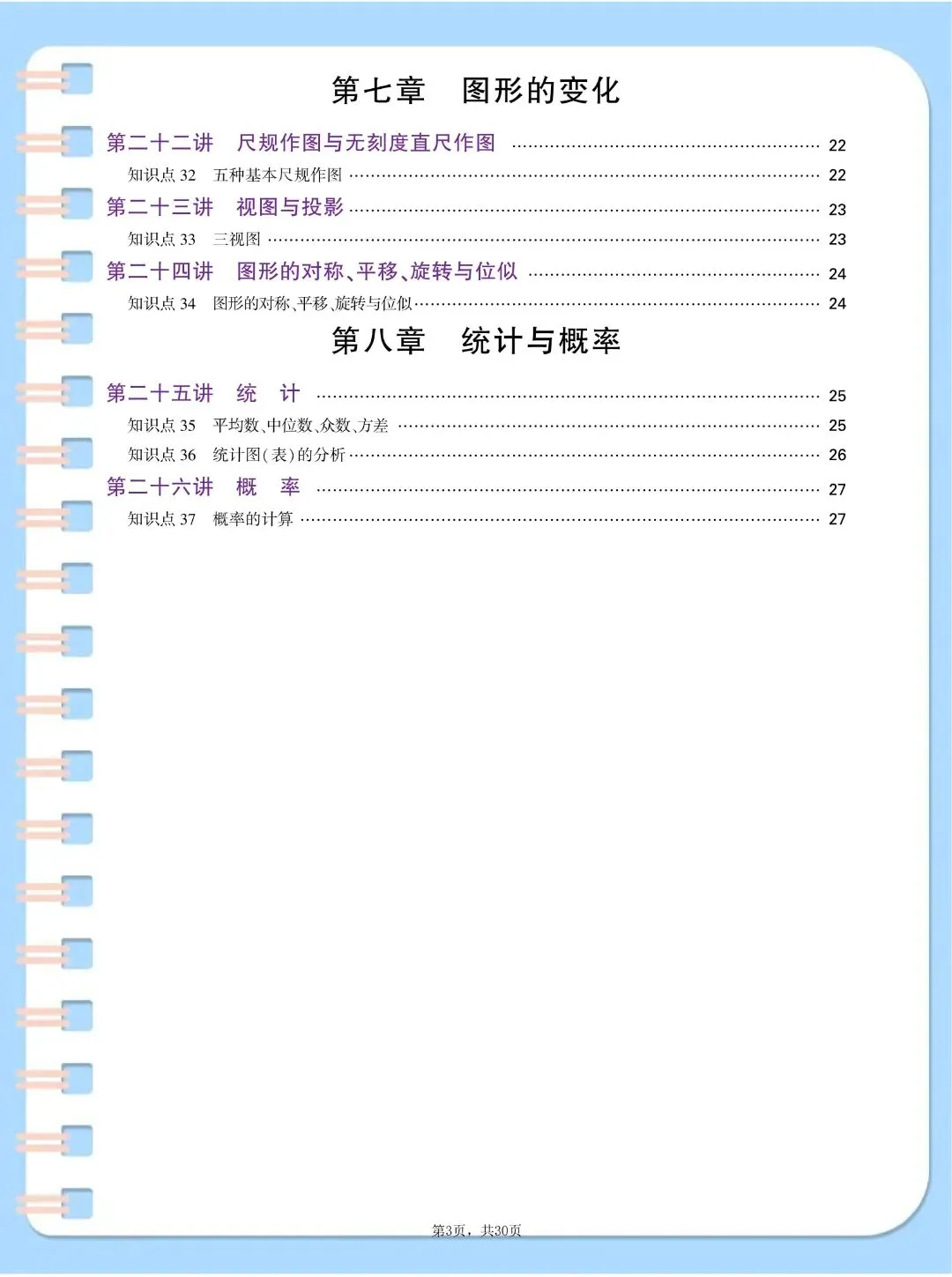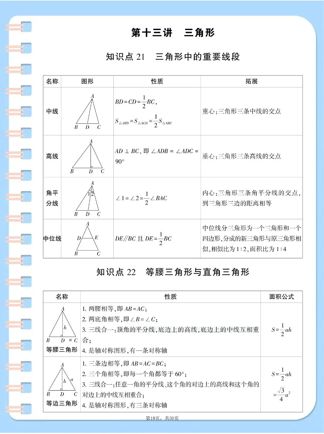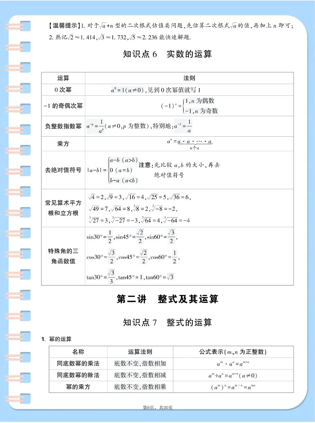 中考数学基础知识点汇总,,完整电子版可打印