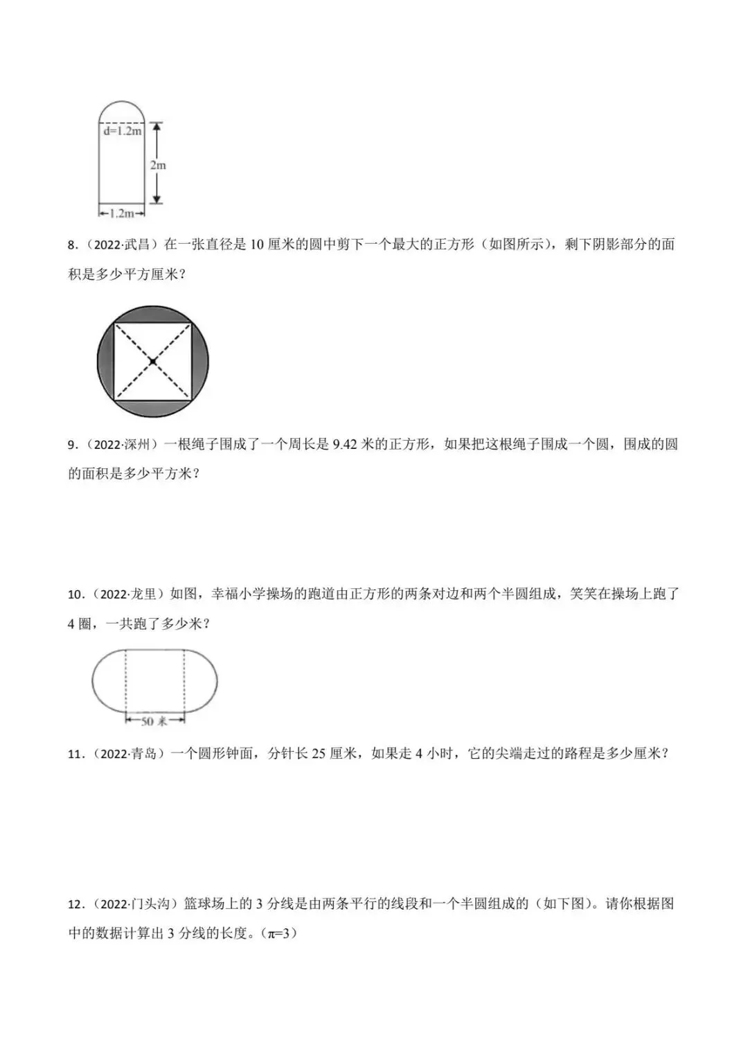 青岛版小升初真题汇编平面图形的周长和面积专项训练(电子版可打印附答案)