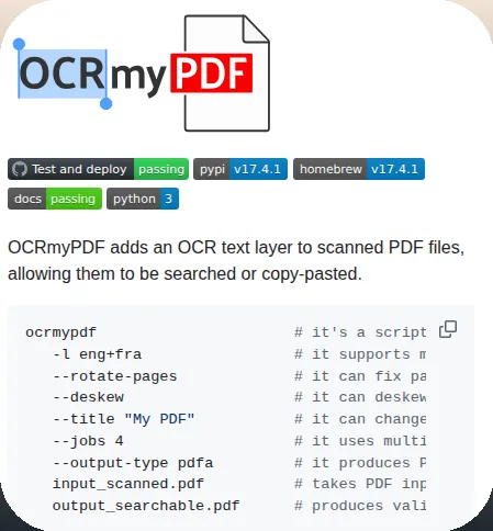 用了OCRmyPDF之后,搜索功能恢复正常,复制文字也不再出错。理论上这对处理大量文档的人来说,省下的时间能用来干正事,而不是反复翻页。