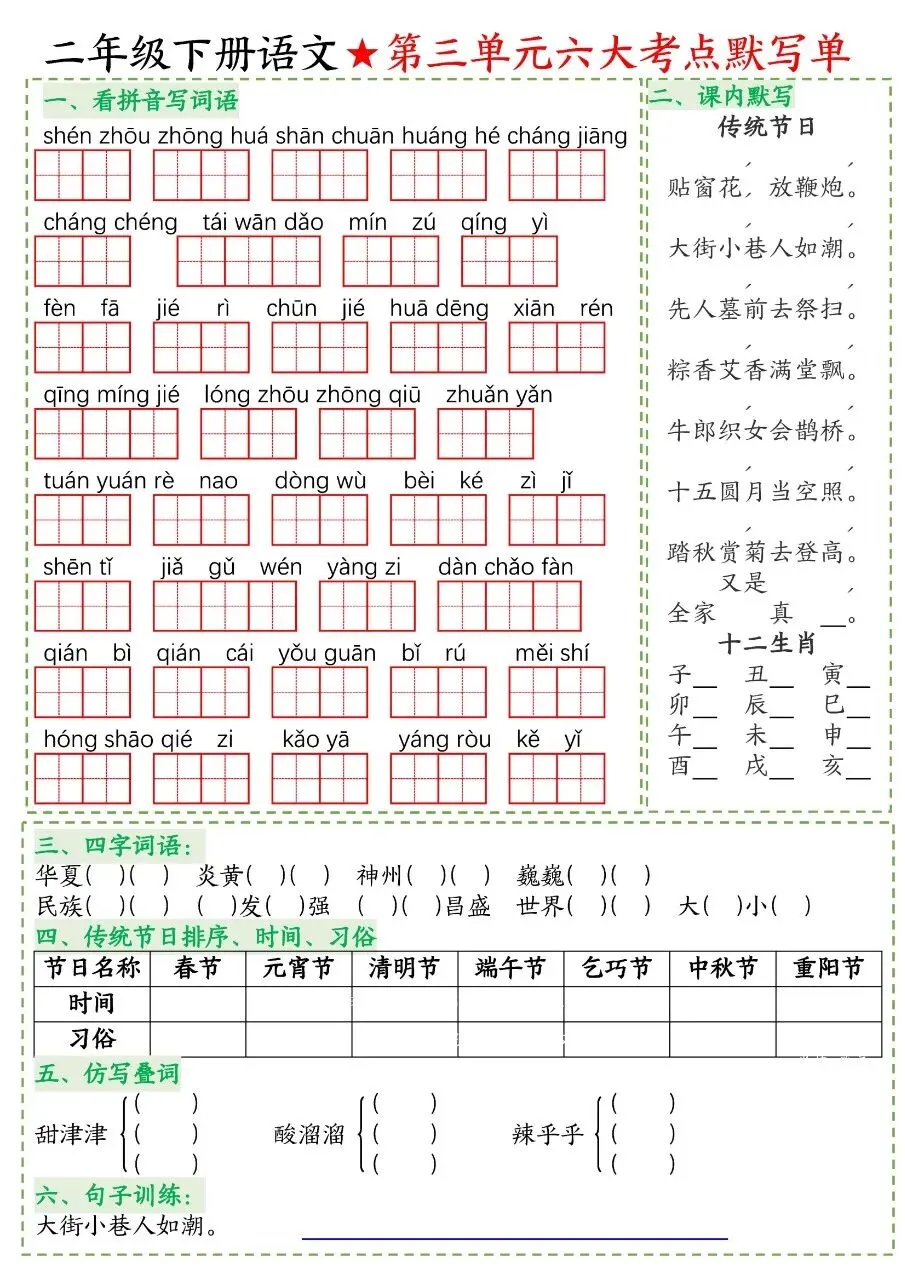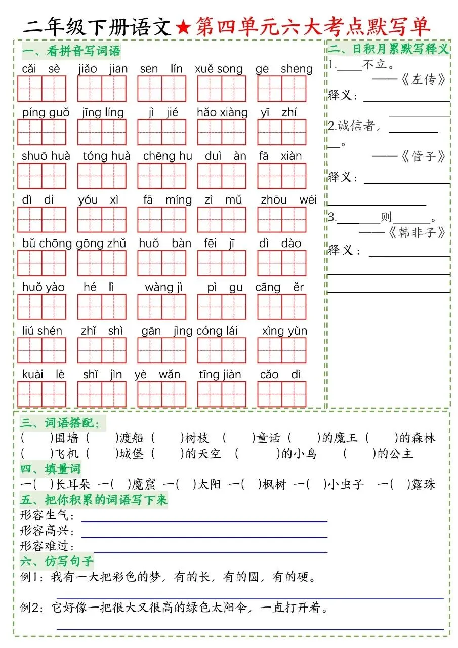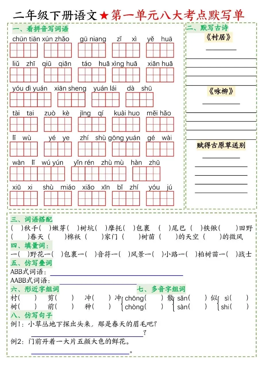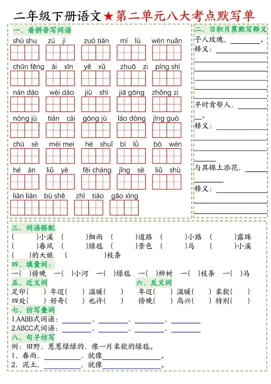 二年级下册语文|期中复习 14 天冲刺(可下载打印)