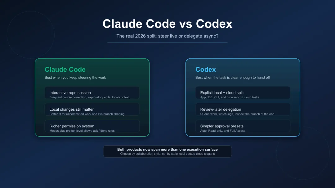 vs Claude Code:Claude在纯推理和自我验证更强,但Codex的真实屏幕操作、记忆和异步自动化更胜一筹,更适合“放手让它干”。