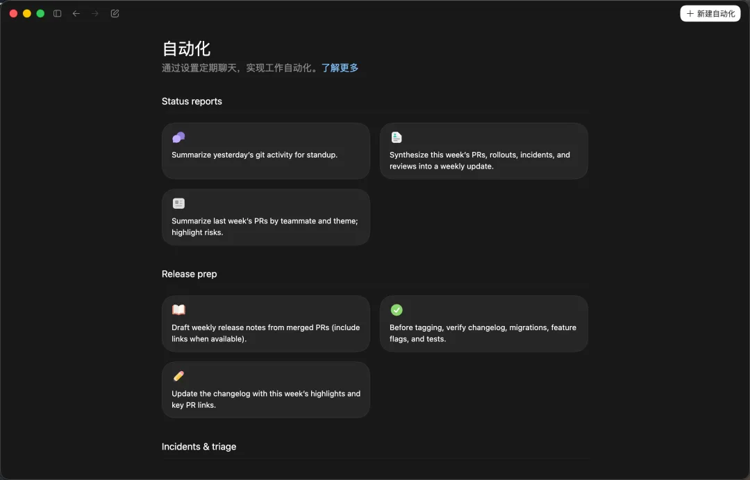 2. 记忆 + 自动化任务 Codex会记住你的工作习惯、项目上下文和过往指令偏好。长期任务可自我调度,几天后自动继续执行。