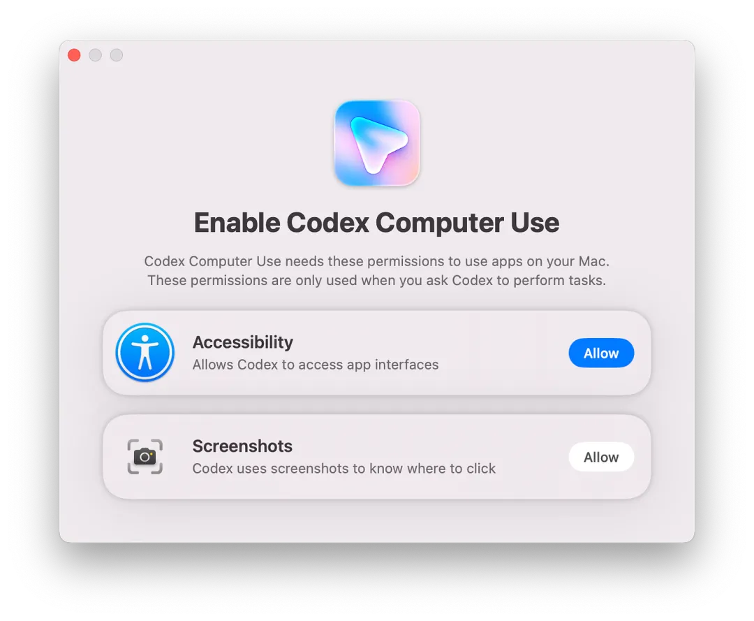 打开后授权屏幕录制 和辅助功能 权限,即可开启Computer Use。