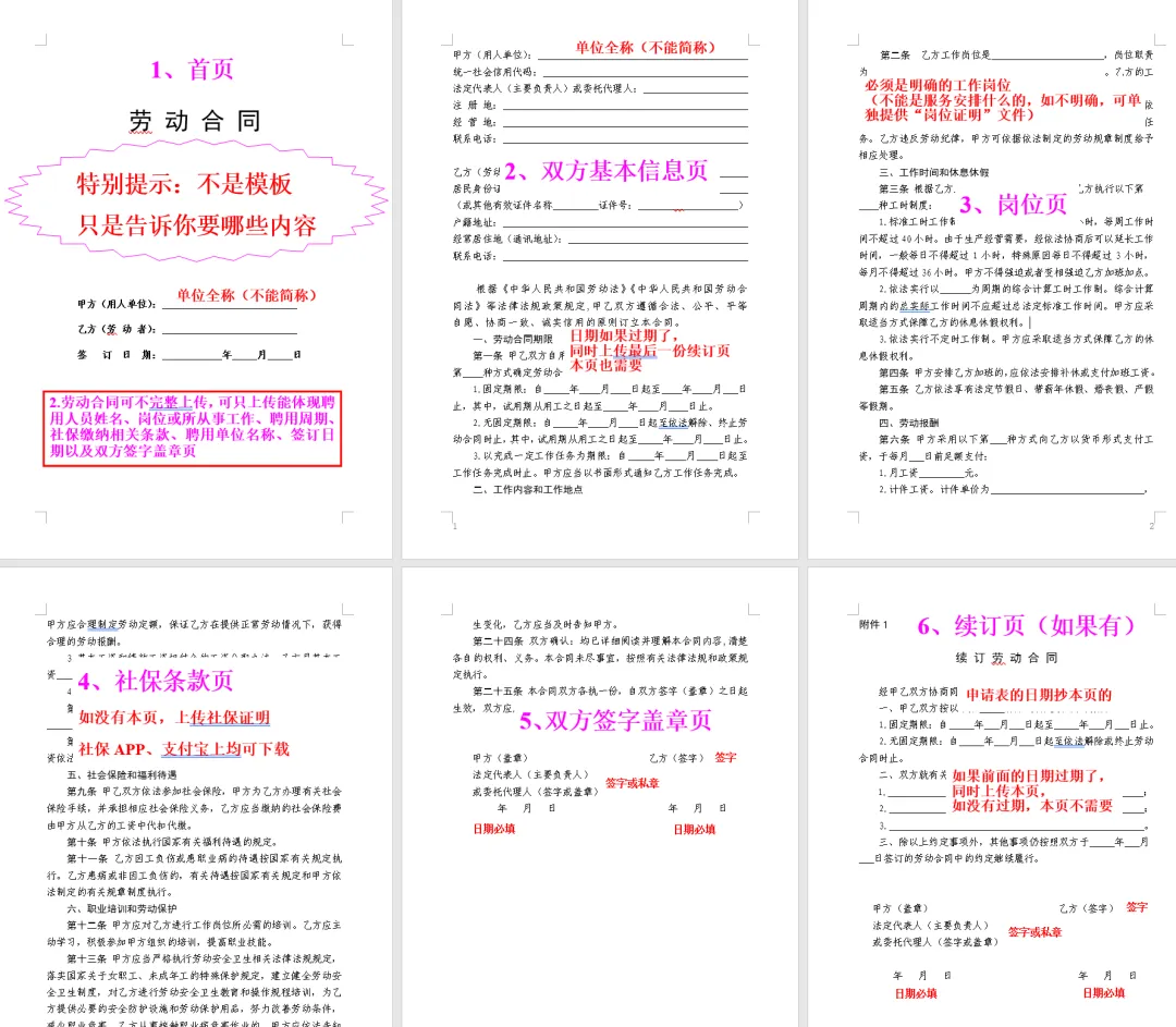 (所以不管你劳动合同有几百页,需要的内容大概只有2~4页)