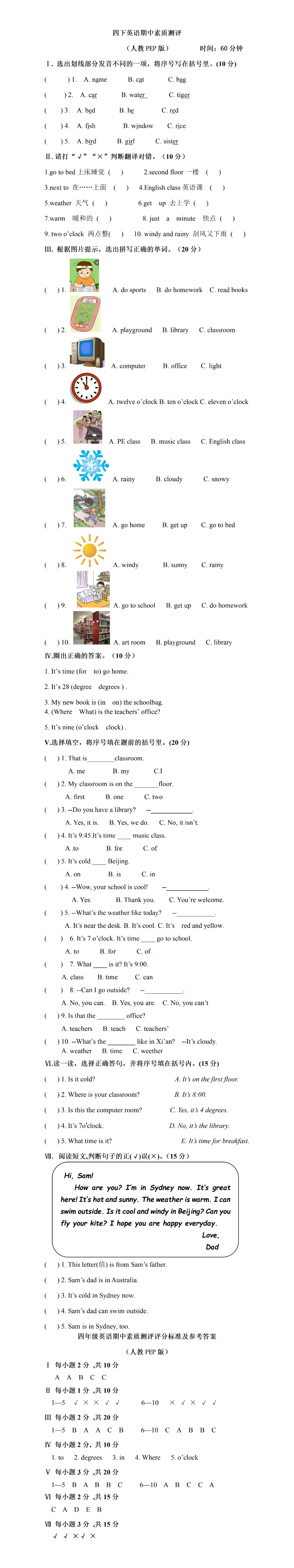 2026春人教PEP版四年级下册英语《期中质量检测卷 3套》,含详细答案共15页(篇幅原因,仅仅展示部分内容),电子版可打印可下载。围绕四年级下册考试核心,展开练习,帮助孩子深入理解题型,夯实学科基础,培养孩子逻辑思维,提升知识综合运用能力与应试技巧,助力升学能力培养,从从容容游刃有余的度过春季学期。欢迎转发分享到班级群, 需要的家长们和老师们抓紧领取一份吧。