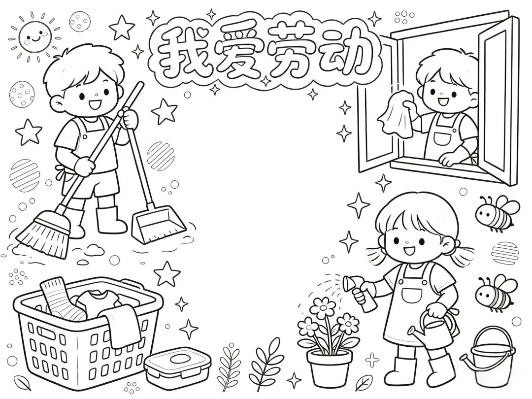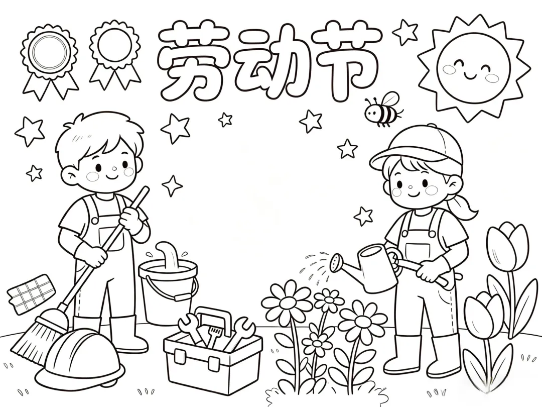 劳动节小报线稿可打印