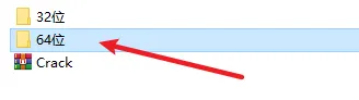 2.打开解压好的文件夹,根据电脑操作系统位数选择“32位”(32位操作系统)或“64位”(64位操作系统),选择对应的文件夹,这里选择“64位”,双击打开