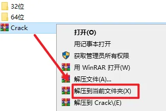9.返回安装文件夹,选中“Crack”文件,右键选择“解压到当前文件夹”