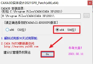 11.根据电脑的操作系统位数选择“X86”(32位操作系统)或” x64″(64位操作系统),点击”GO”