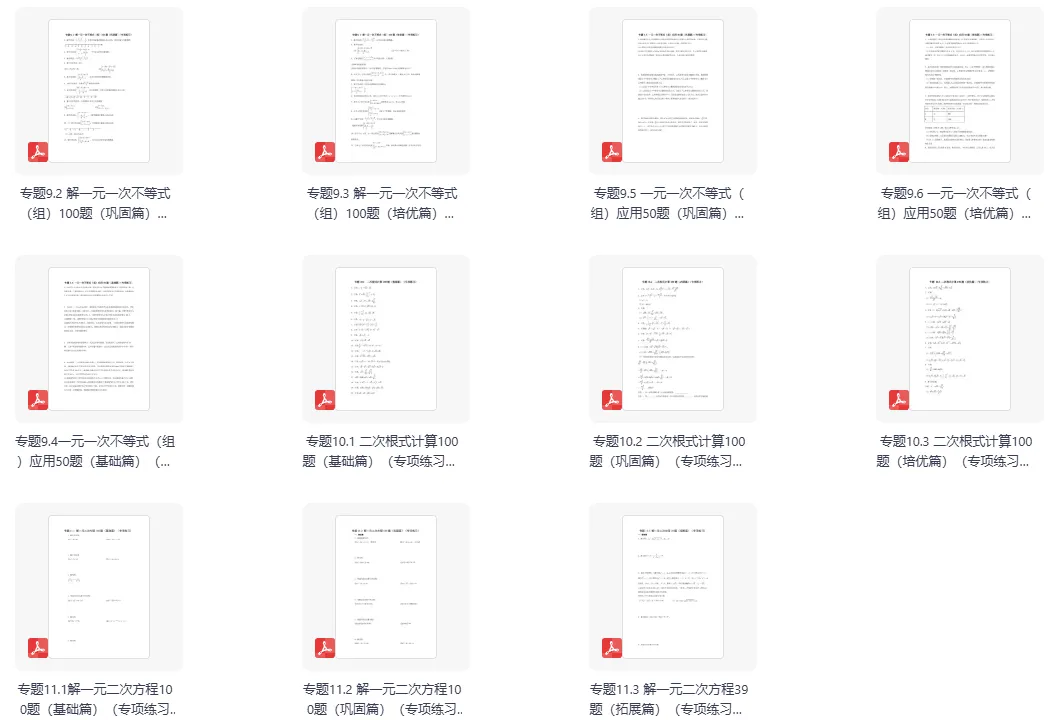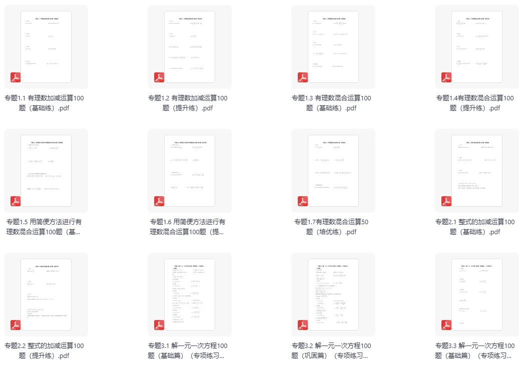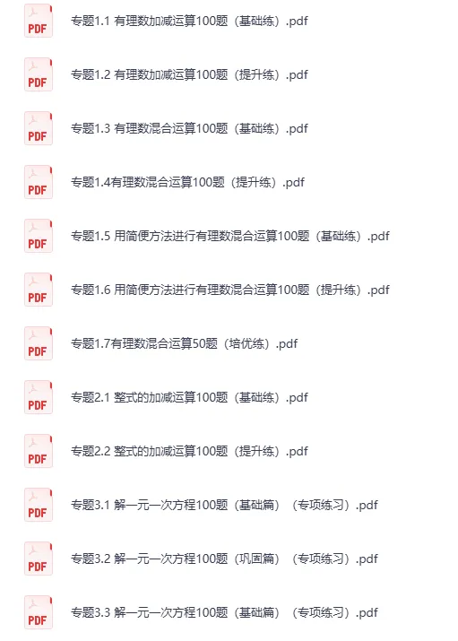 今天分享的是一套初中数学计算题专项训练数与式有理数整式因式分解分式二次根式,共51套训练题,PDF和word两种格式。