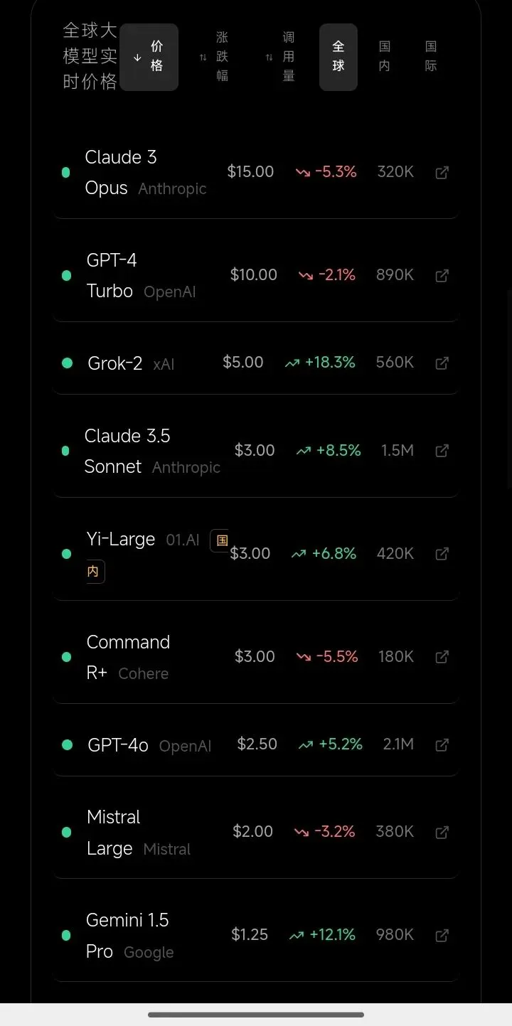 三、全球大模型调用量数据与价格